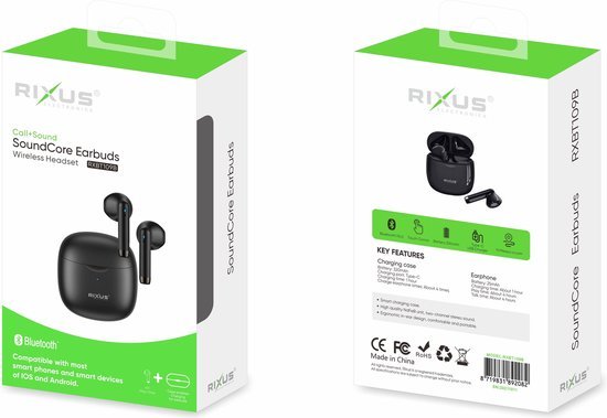 Rixus SoundCore Earbuds: draadloze blutooth-oortjes met uitstekend geluid, comfortabele pasvorm en lange batterijduur. Ultieme audio-ervaring onderweg!